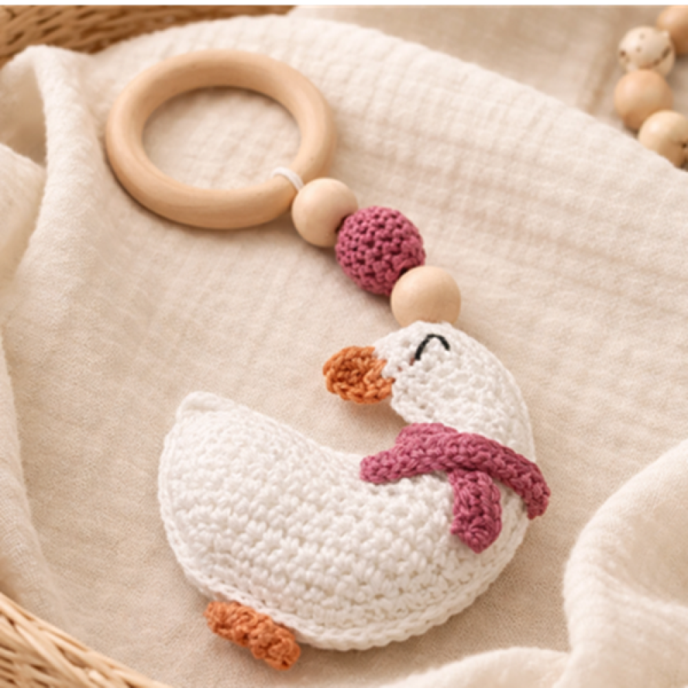 Deze bijtring met superschattige gnas wordt op maat gemaakt, daardoor is de levertijd wat langer.